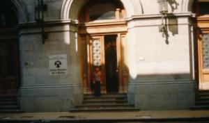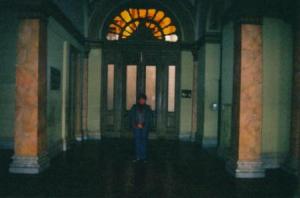 | La viandante en el vestíbulo de la antigua Biblioteca Nacional, hoy Centro Nacional de la Música. Buenos Aires, abril de 2003. |