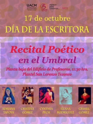 Como parte de la conmemoración del Día de la Escritora en México, se llevará a cabo una lectura de poesía.