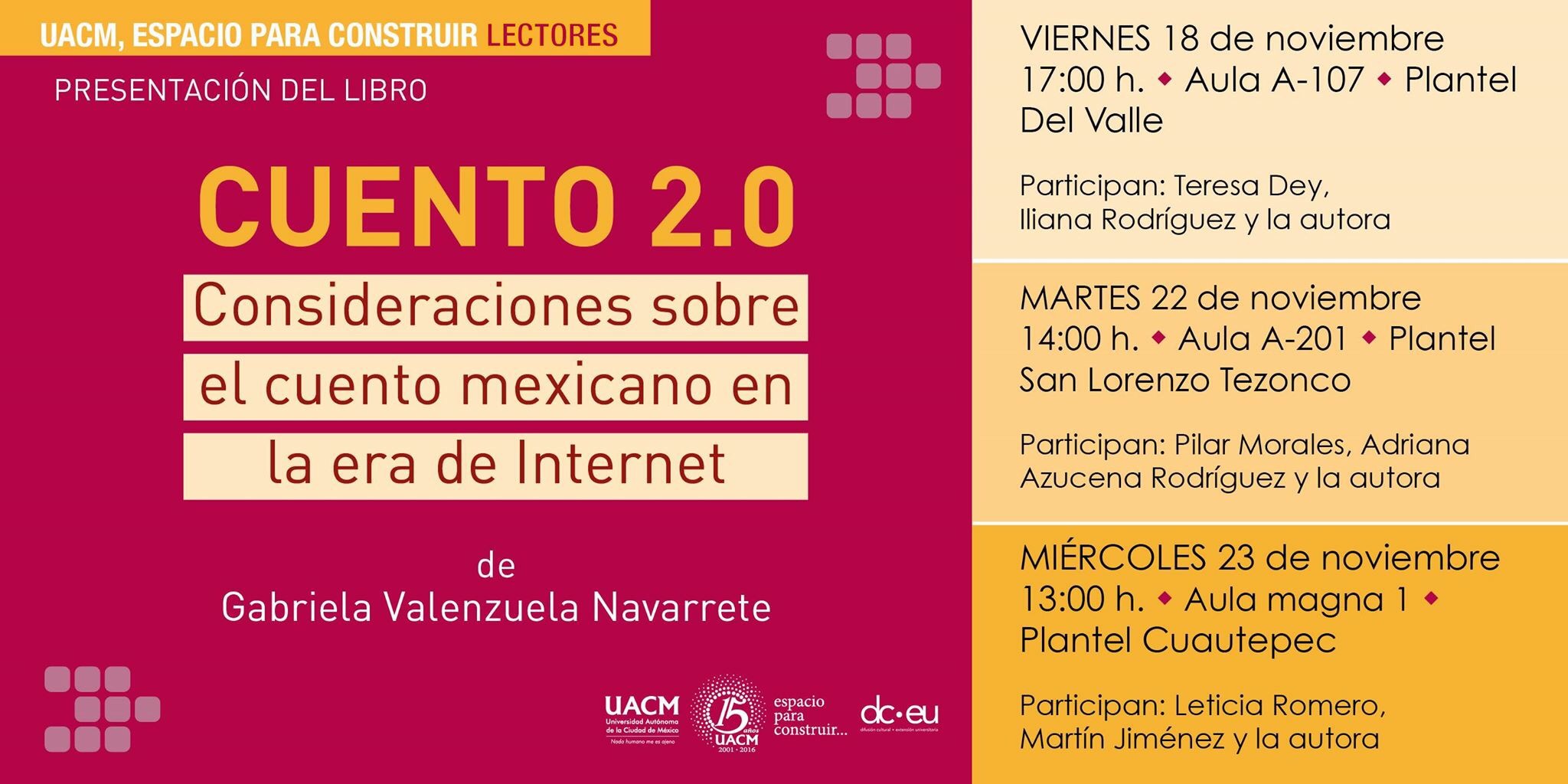 Presentación del libro Cuento 2.0. Consideraciones sobre el cuento mexicano en la era de Internet, de Gabriela Valenzuela Navarrete.
