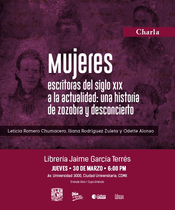 Las escritoras Odette Alonso, Leticia Romero Chumacero e Iliana Rodríguez Zuleta reflexionarán sobre la historia de zozobra y desconcierto que ha significado para las mujeres ejercer el oficio de escritoras profesionales en México desde el siglo XIX a la actualidad.