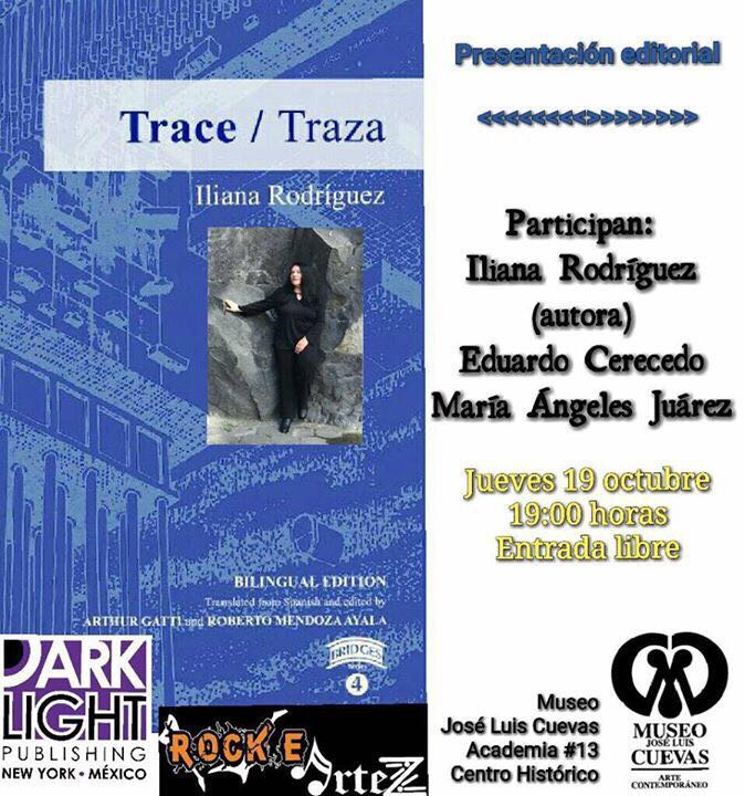 El libro Trace/Traza, de Iliana Rodríguez, se presentará el jueves 19 de octubre, a las 19 horas, en el Museo José Luis Cuevas, sito en Academia 13, Centro Histórico, Ciudad de México.