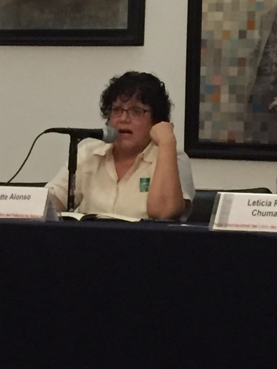 Leticia Romero Chumacero da la palabra al público. El tiempo apremia en la Feria Internacional del Libro y tenemos que concluir. Me quedo con la idea de los exilios y los palimpsestos: las capas se superponen.