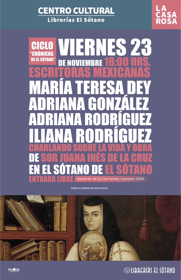 El viernes 23 de noviembre charlaremos sobre sor Juana Inés de la Cruz en la Casa Rosa de la librería El Sótano.