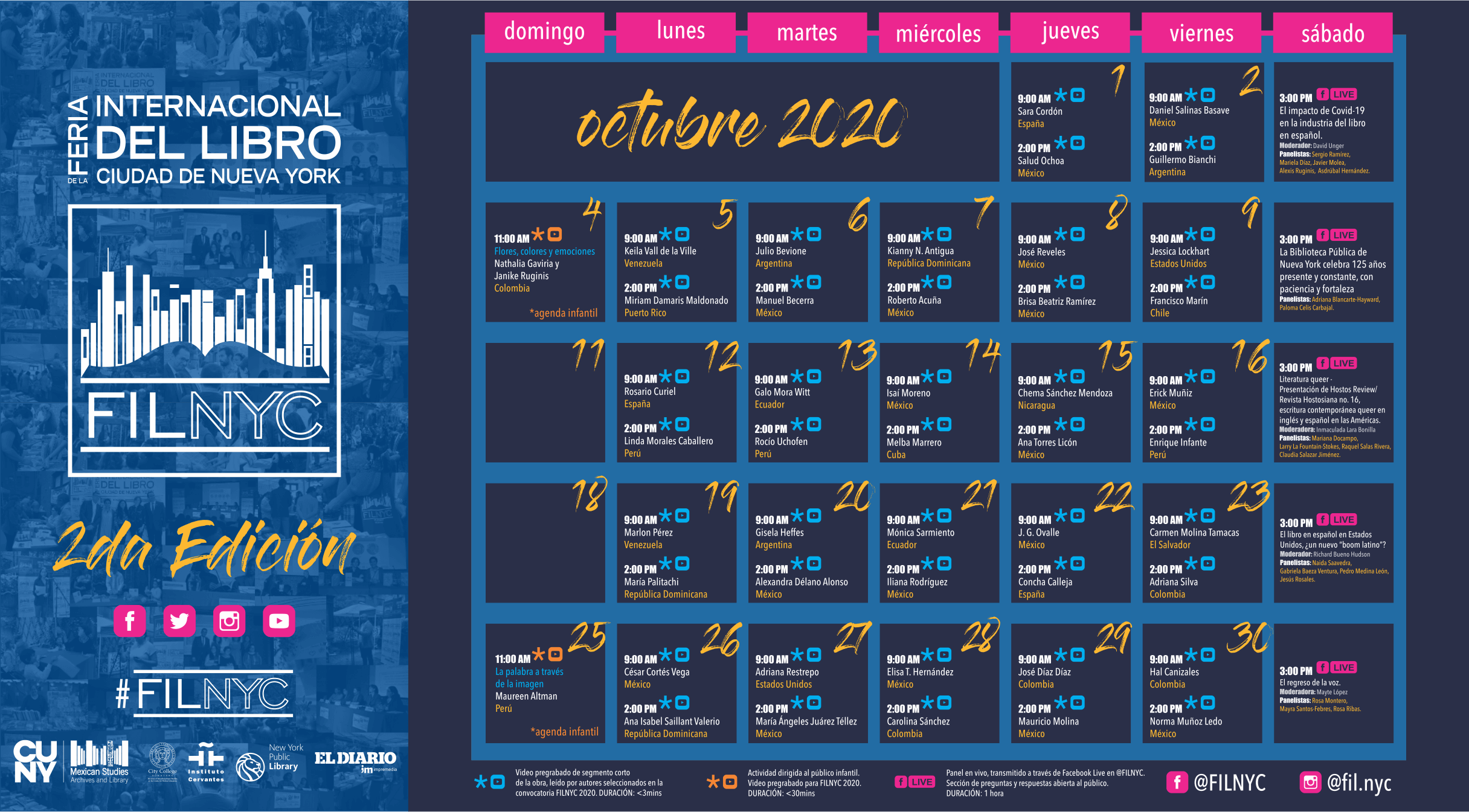 Este año participaré en la Feria Internacional del Libro de la Ciudad de Nueva York (FILNYC), que será virtual. La Feria escogió mi video para formar parte de su antología en línea.