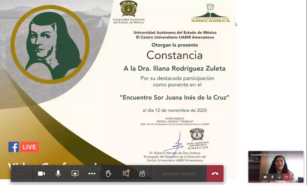 Hoy 12 de noviembre participé en el Encuentro Sor Juana Inés de la Cruz con la lectura de mi plaquette de poesía Trayectorias.