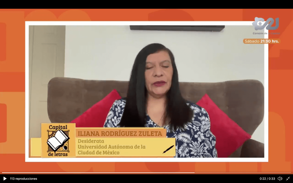 Leí mis poemas en el programa Capital de Letras, del canal de televisión abierta Capital 21 de la Ciudad de México, que se transmitió el 14 de noviembre a las 21:30 h.