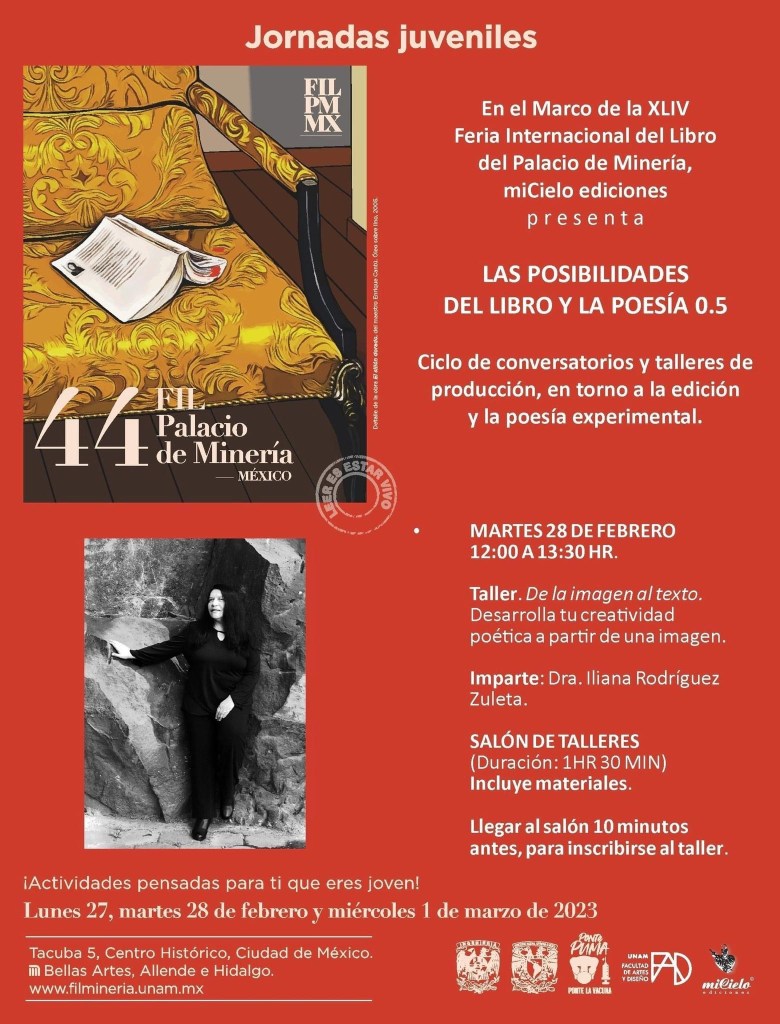 El 28 de febrero pasado impartí el taller “De la imagen al texto” en la Feria Internacional del Libro del Palacio de Minería. La actividad formó parte del ciclo organizado por Mónica González Velázquez, directora de miCielo ediciones.