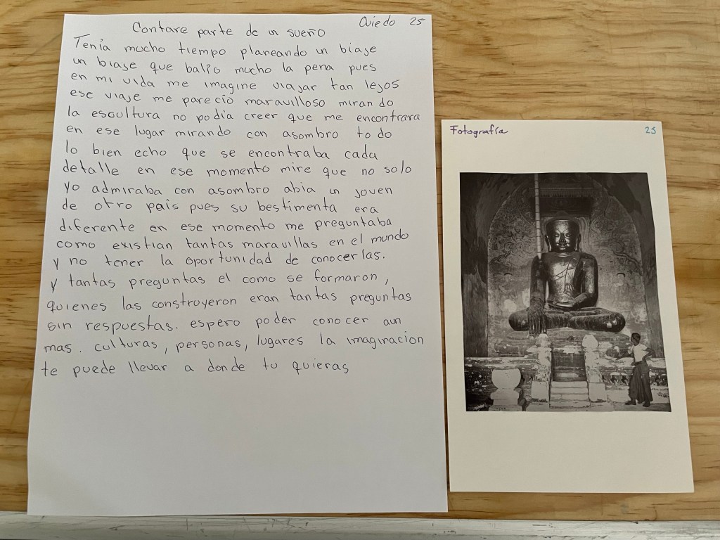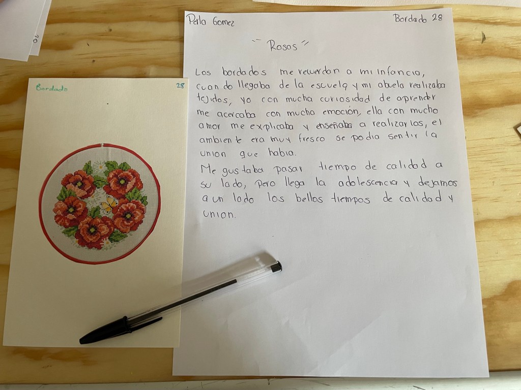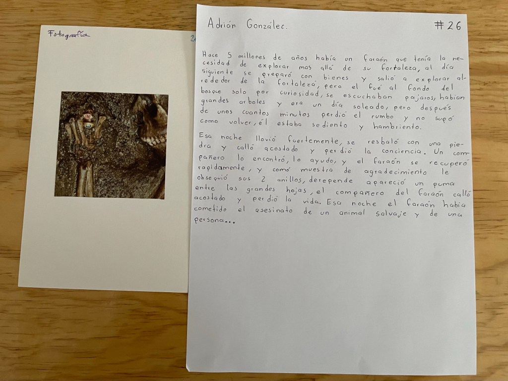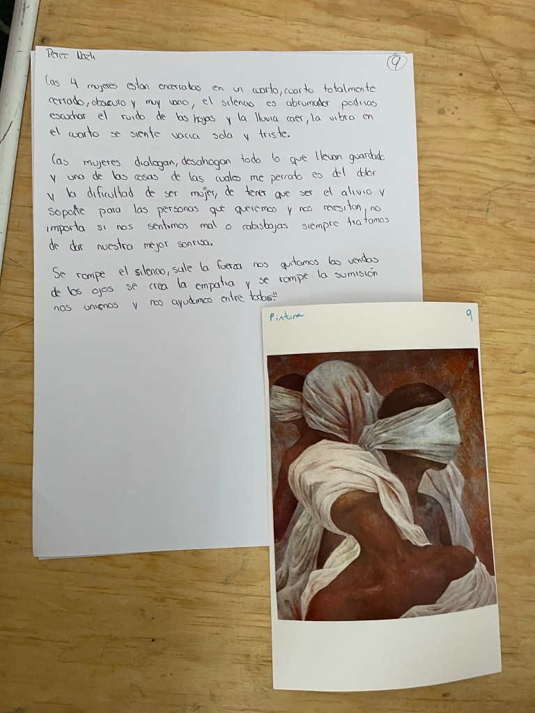 En las fotos se pueden ver los textos que escribieron los participantes, junto con las imágenes detonadoras.
