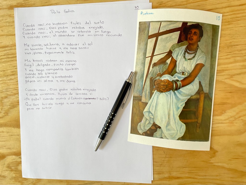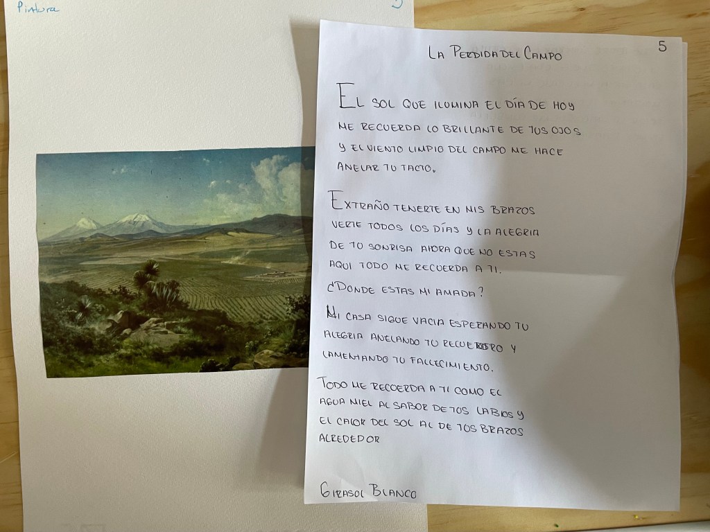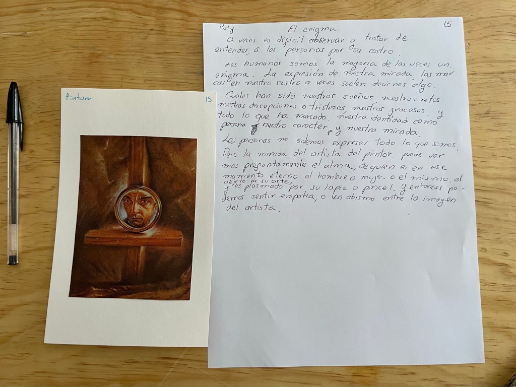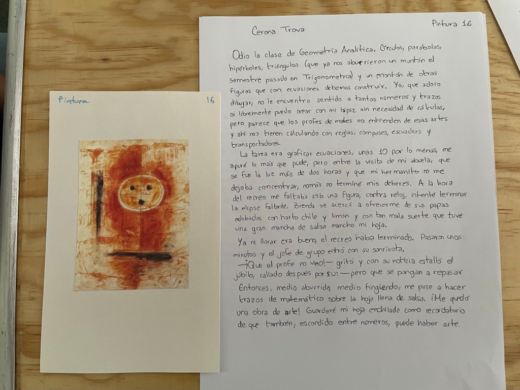 En las fotos se pueden ver los textos que escribieron los participantes, junto con las imágenes detonadoras.
