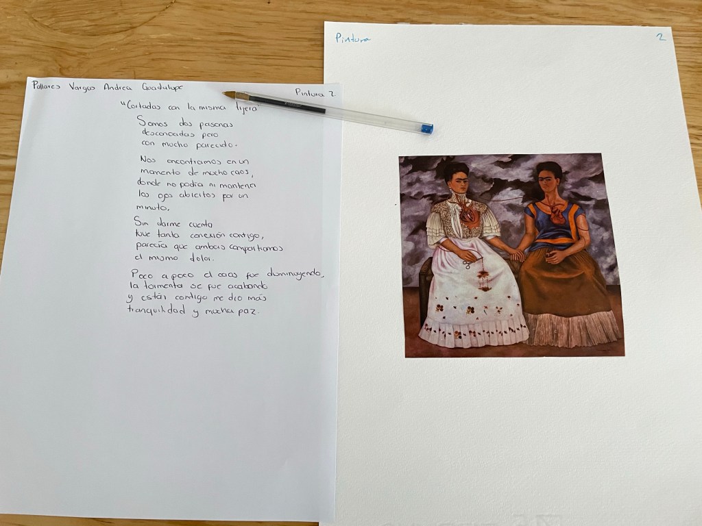 El taller se trató de presentar a los participantes una imagen detonadora de la creatividad. Les hablé de la écfrasis y de algunas técnicas de la aproximación a una obra de arte visual en la poesía.