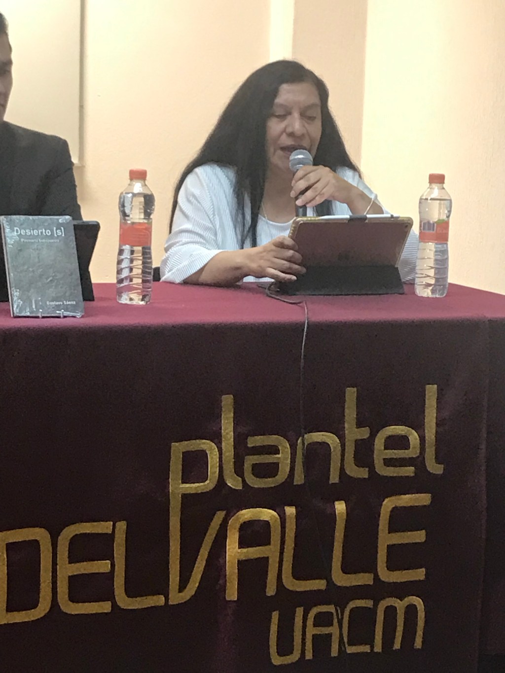 El pasado 28 de marzo, presentamos el libro de poesía Desierto[s], de Gustavo Sáenz, en el Plantel Del Valle de la Universidad Autónoma de la Ciudad de México. Participamos en la presentación Adonis Pérez y yo, Iliana Rodríguez Zuleta.