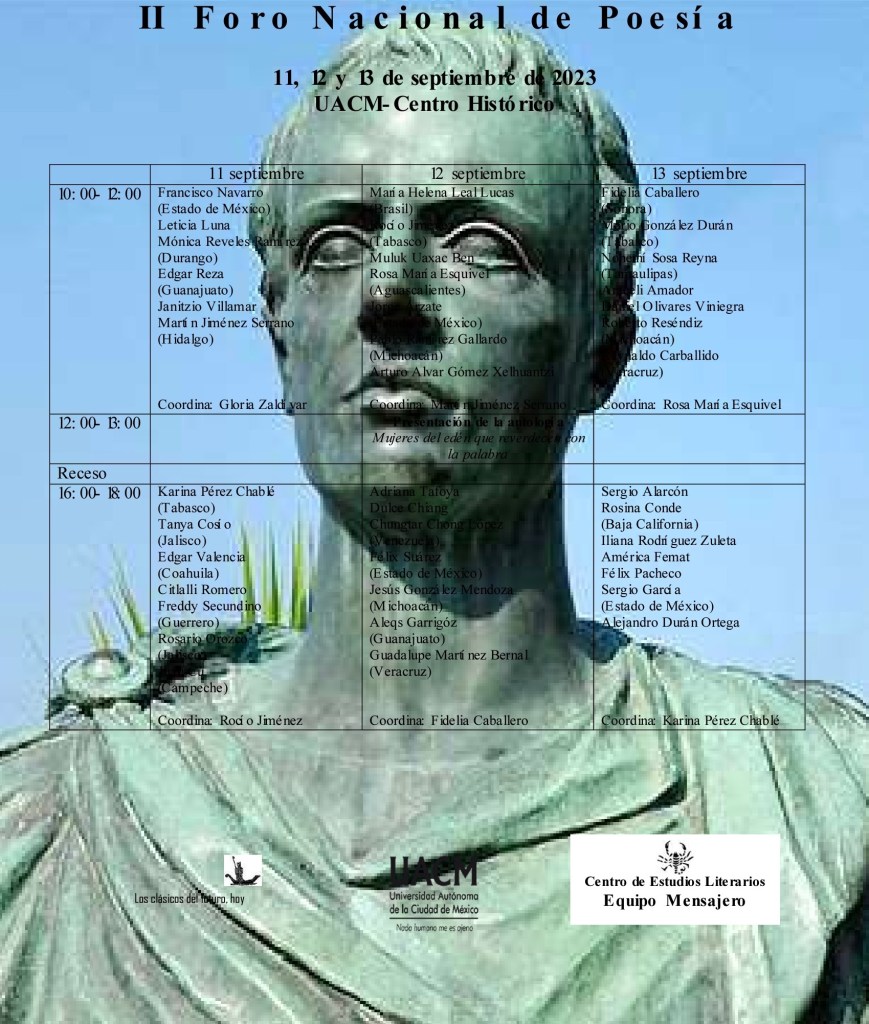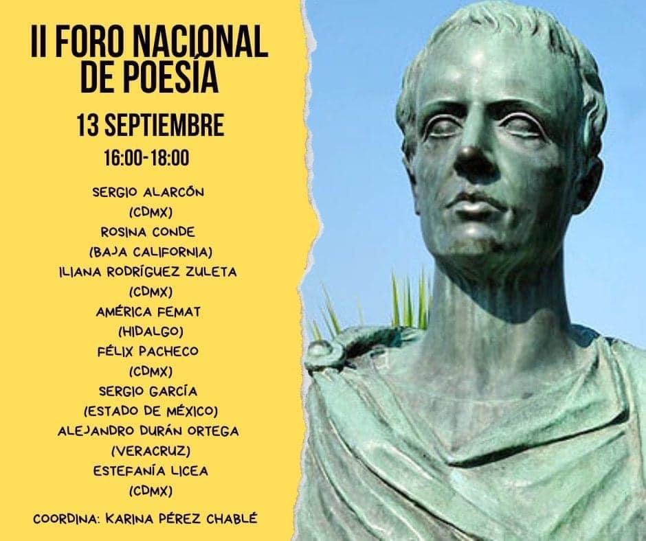 El miércoles 13 de septiembre se llevará a cabo una de las mesas de lectura del II Foro Nacional de Poesía, en la cual participaré. ¡Ven a escucharnos!