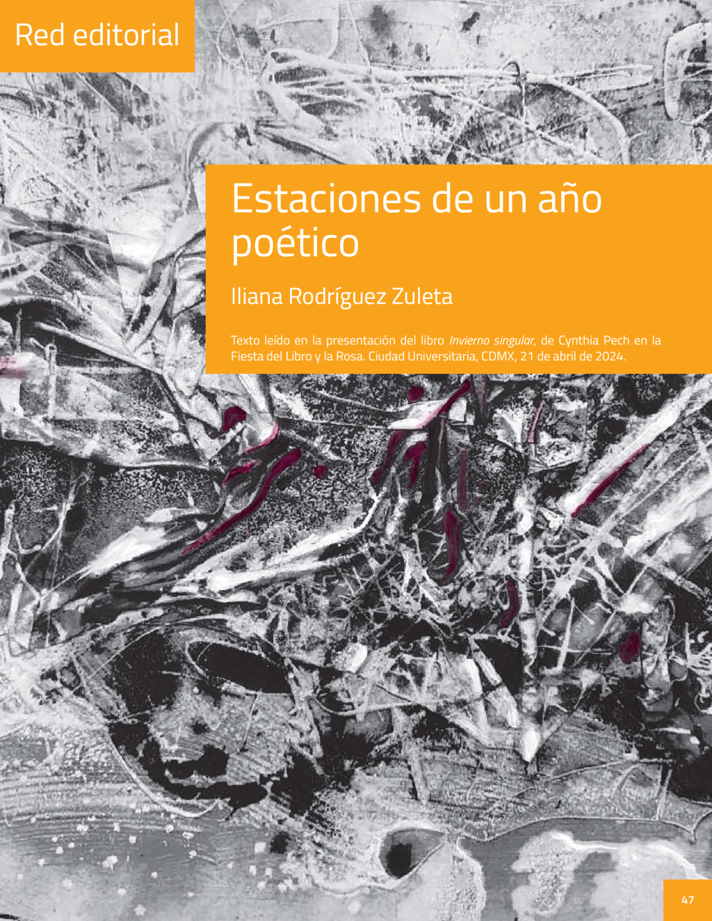 En el boletín Tianguis de letras, de la Universidad Autónoma de la Ciudad de México incluyeron mi reseña sobre el libro de poemas Invierno singular, de Cynthia Pech.