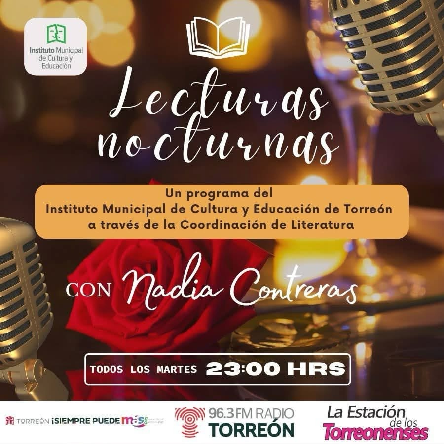 El martes 11 de marzo, a las 11 p.m., participaré en el programa de radio Lecturas Nocturnas, de la escritora Nadia Contreras. Hablaremos sobre mi obra literaria y leeré algunos de mis poemas.