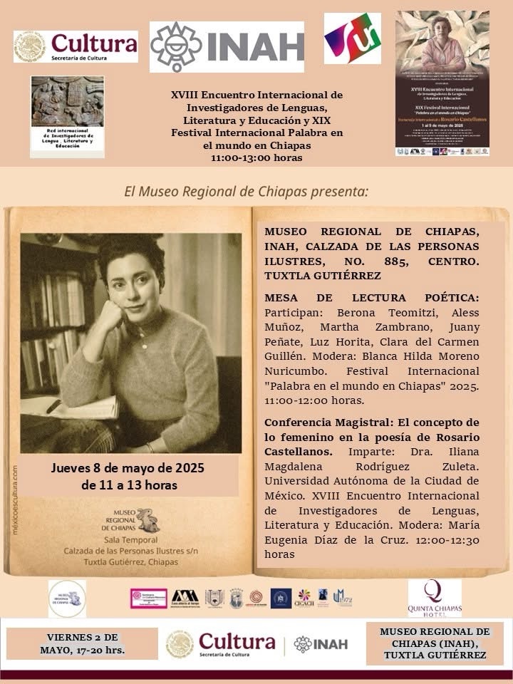 De manera paralela, se realizará el XVIII Encuentro Internacional de Investigadores de Lenguas, Literatura y Educación. Este año se le dedica a Rosario Castellanos. Participaré con una conferencia magistral.